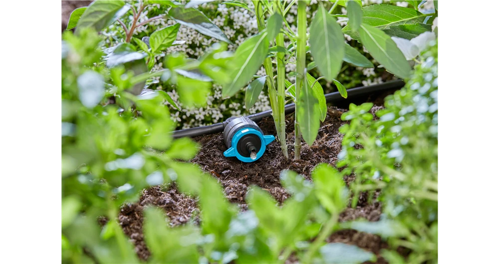 - The pressure-compensating Inline Drip Head ensures that your plants in the trough or on the slope receive the same amount of water even with differences in height on the balcony or terrace.
