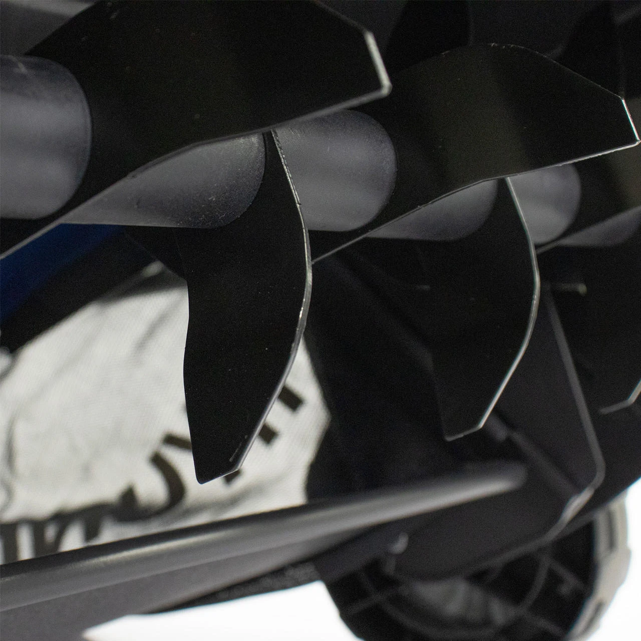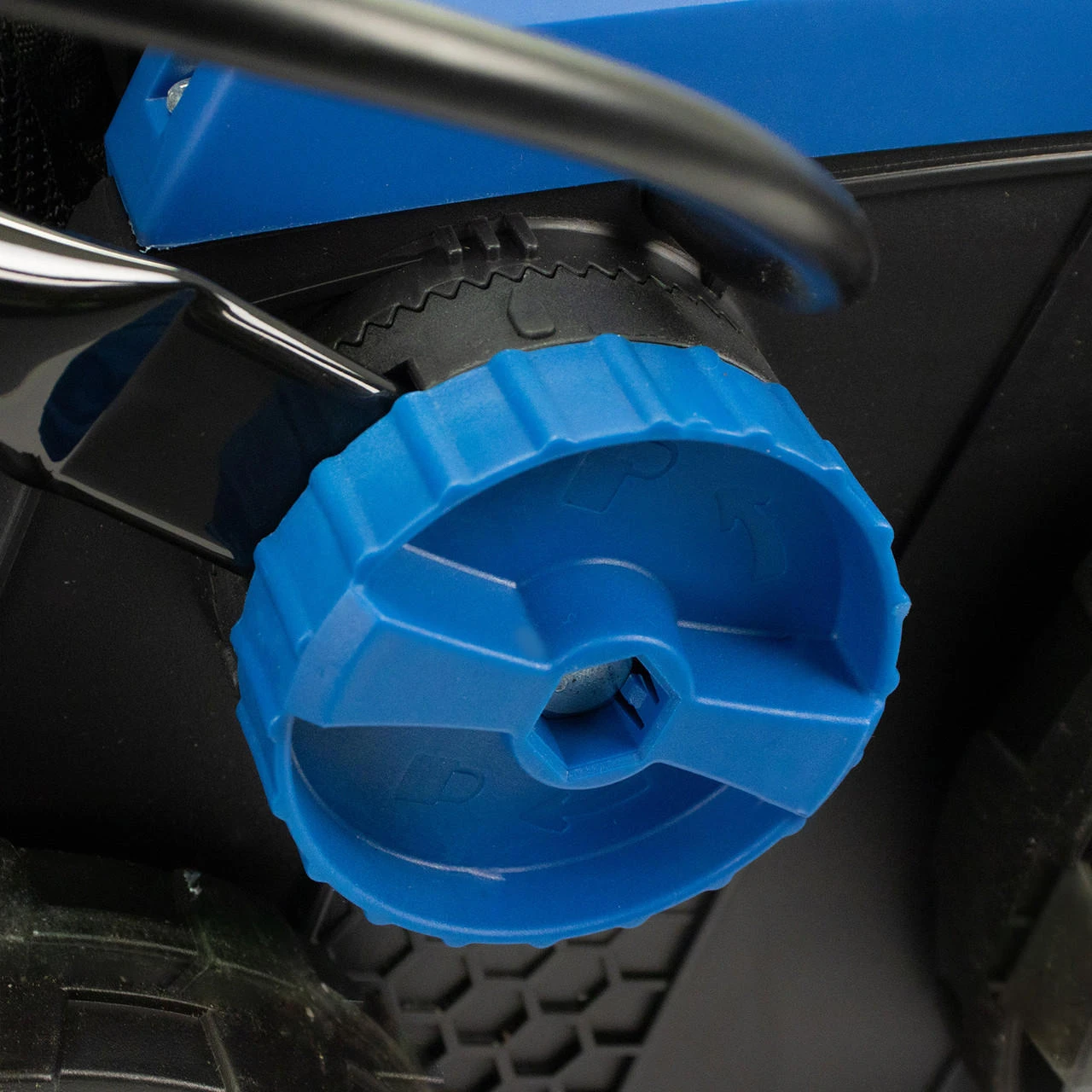 Weighing just 11.91kg (inc. batteries), the HY2196’s robust front (200mm) and back (150mm) wheels make this Hyundai cordless scarifier particularly easy and comfortable to push around your garden, and the specially designed wide tread helps protect your lawn from damage while using the scarifier. It also has foldable handles for easy, compact storage in your garage or shed.