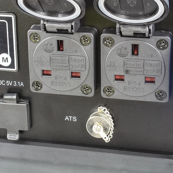 The control panel features two 230v sockets for use with any appliances which use a standard 3-pin 13A UK mains plug, as well as a 32A 230v socket, 12v 5A outlet, and 12v DC battery charging outlet, allowing you to power multiple things at the same time, such as a heater, kettle and fridge.