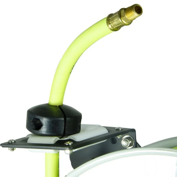 - Multi-position ratchet locking bracket with 9-position guide arm 4 non-snag rollers reduce hose wear abrasion