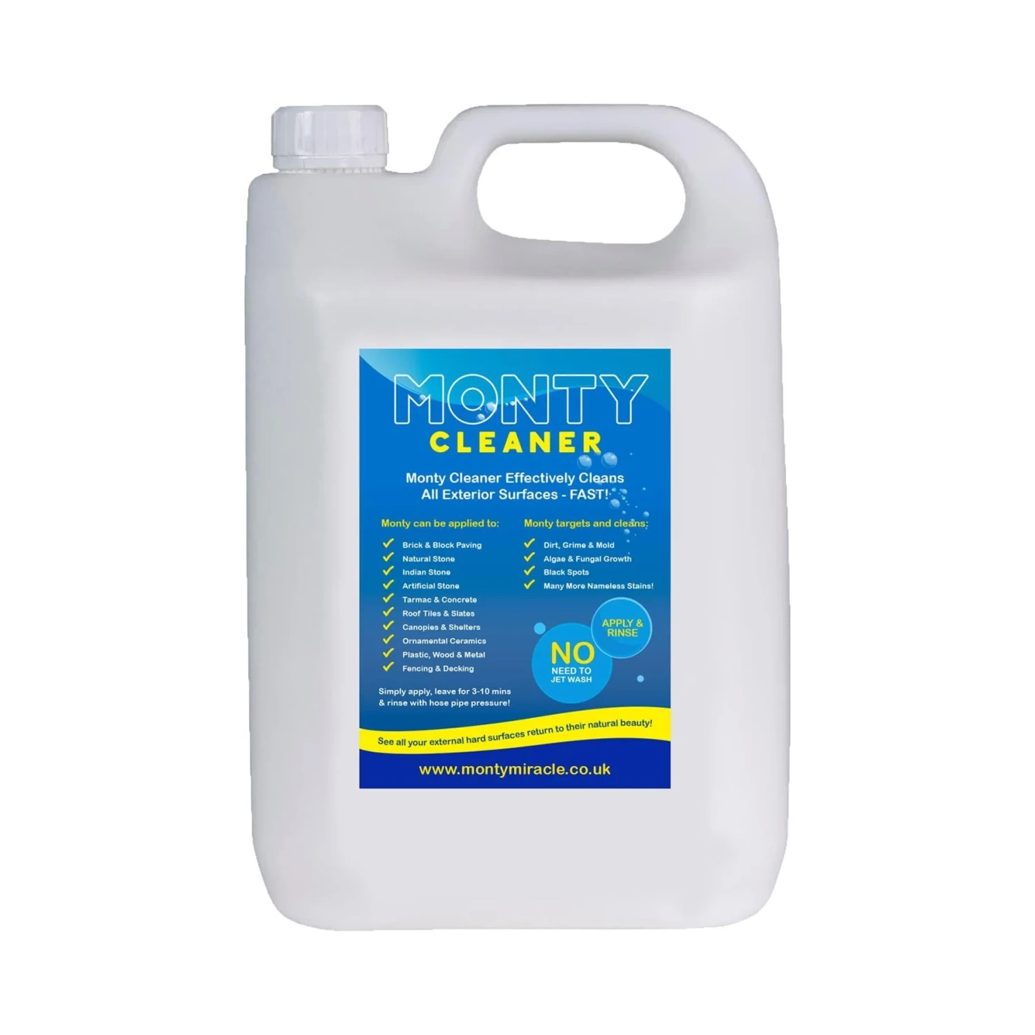 Monty Miracle Fast Outdoor Garden & Patio Cleaner is perfect for quickly and safely restoring outdoor spaces. It covers up to 25m² per 5L bottle, in 10 minutes or less, without the need for pressure washing. Plus it boasts 18-month storage life. Enjoy a spotless, rejuvenated area with Monty Miracle Instant Cleaner.