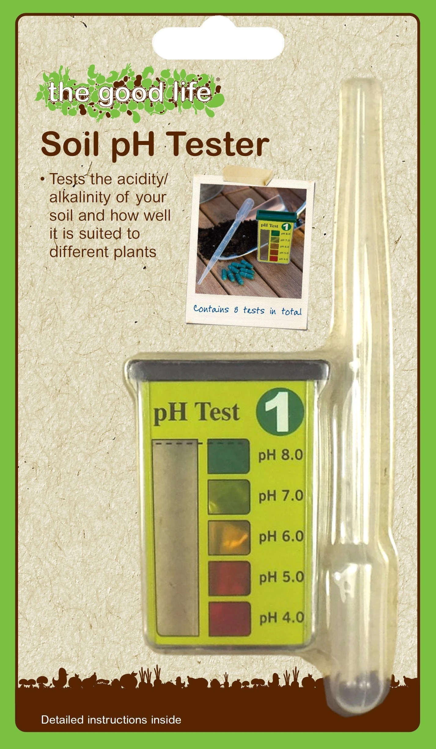 - Tests for pH (acid-alkaline) level and tells you what plants are suited to your garden.