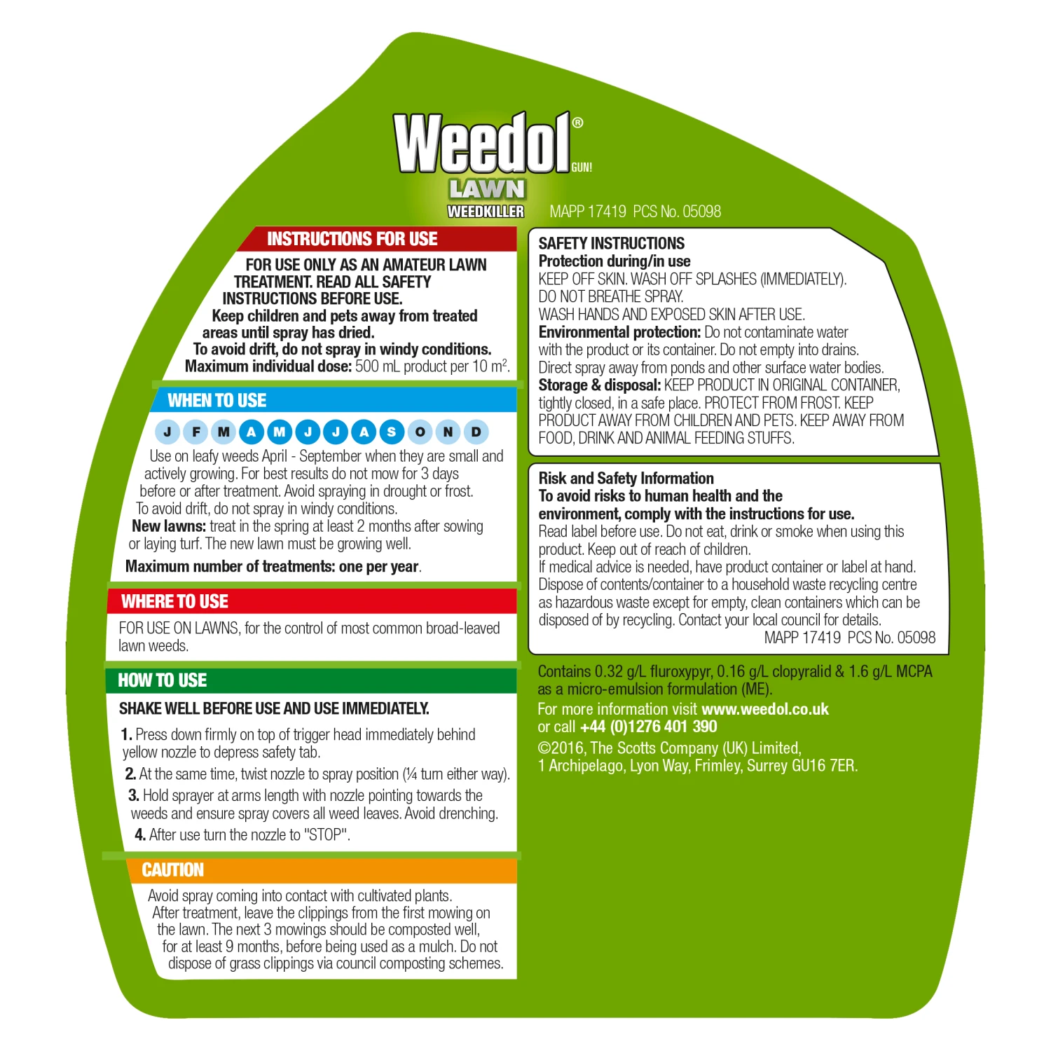 - Pre-diluted ready-to-use selective weedkiller spray for use on lawns